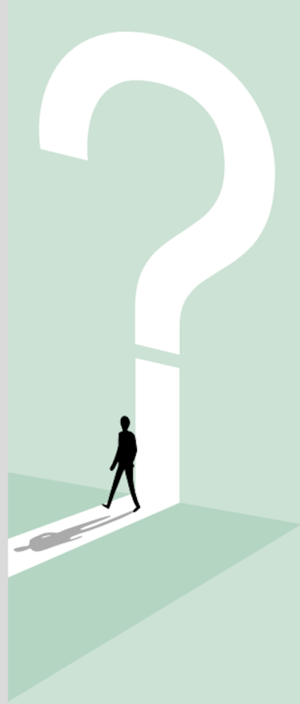 Mensch kommt aus Fragezeichen, daneben steht Wehrdienst, Freiwilligendienst, Verweigern